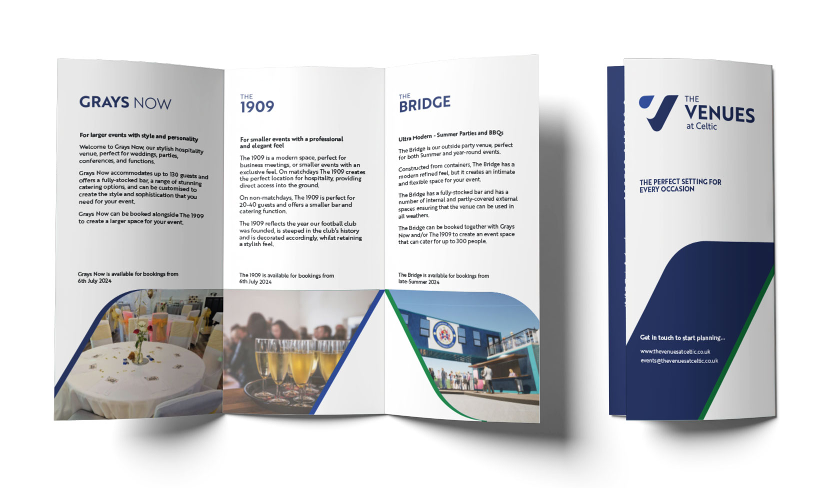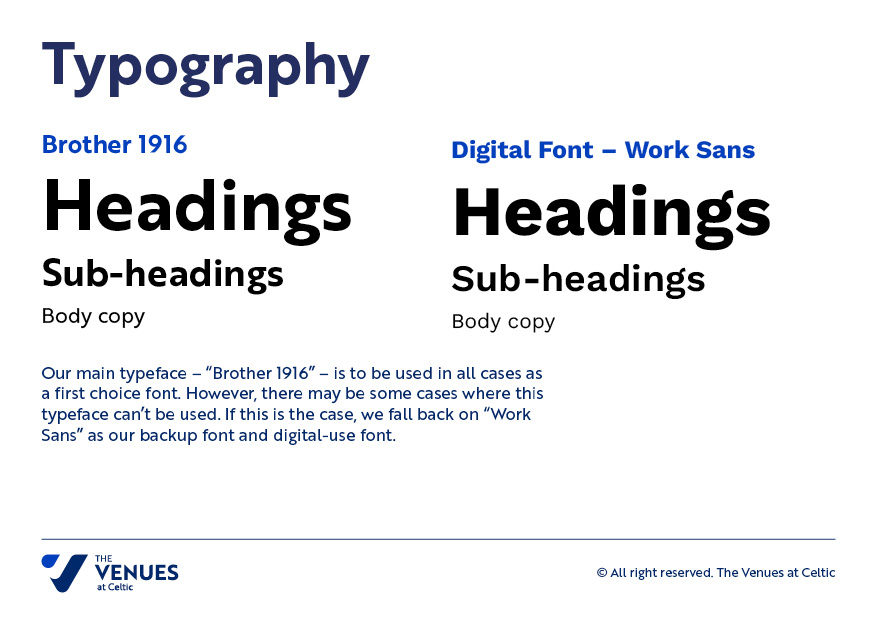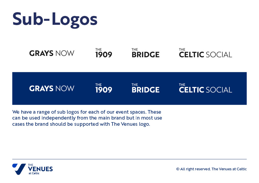 From initial discussions with the stakeholders through to brand strategy and launch, we supported the club to create a brand fit for their needs that met the requirements of everyone involved. Retaining ties to the club and its history, dating back to 1909, was a key priority. The Venues at Celtic brand was born with 4 sub-brands, one for each hospitality venue area. This built flexibility into the new identity with the sub-brands for matchdays (signifying the hospitality areas) and the main brand acting as the public facing private and business function event company. We have delivered a brand for Stalybridge Celtic FC that can stand the test of time and be implemented across all of their required business aspects.